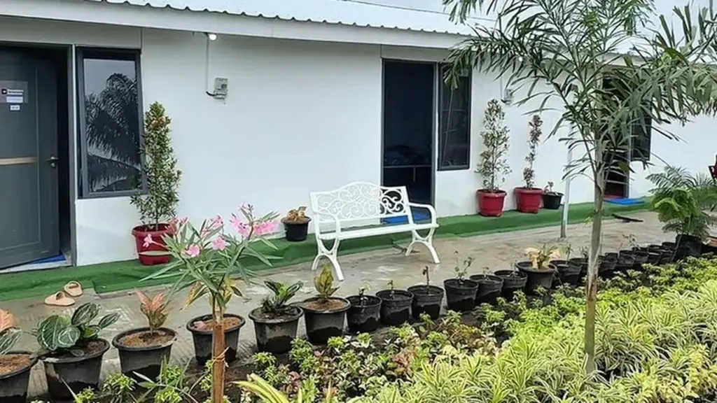 Hunian sementara yang dirancang Danantara ini memiliki desain fungsional dengan satu pintu dan satu jendela untuk memastikan sirkulasi udara yang baik. Setiap unit dilengkapi dengan dua tempat tidur, lemari, kipas angin, dan meja makan.