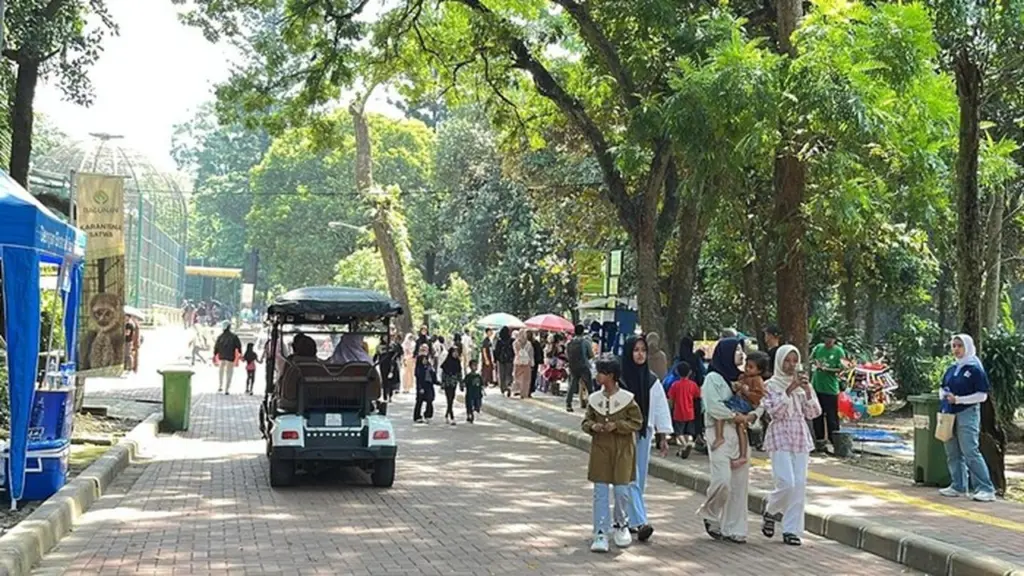 Aktivitas pengunjung beragam, mulai dari berfoto, memberi makan satwa sesuai aturan, hingga berkeliling menggunakan sepeda sewaan. Petugas Ragunan tampak aktif mengingatkan pengunjung untuk menjaga kebersihan dan ketertiban selama berada di area kebun binatang.