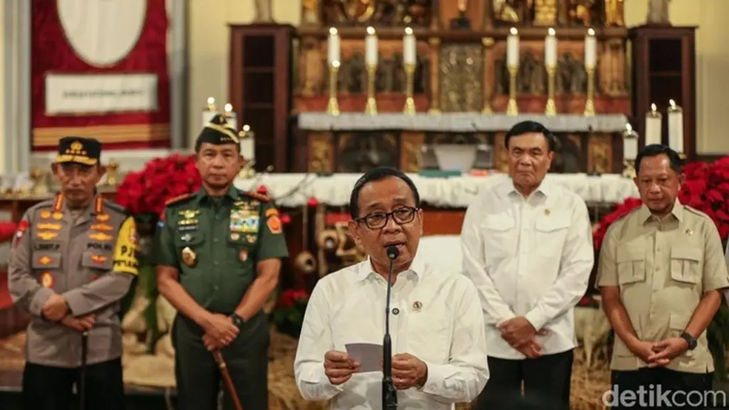 Menteri Koordinator Bidang Pembangunan Manusia dan Kebudayaan (Menko PMK) Pratikno meninjau langsung ibadah misa malam Natal 2025 di Gereja Katedral dan Immanuel, Jakarta Pusat. Dalam kunjungannya, Pratikno turut menyampaikan pesan Natal dari Presiden Prabowo Subianto kepada para jemaat yang hadir.