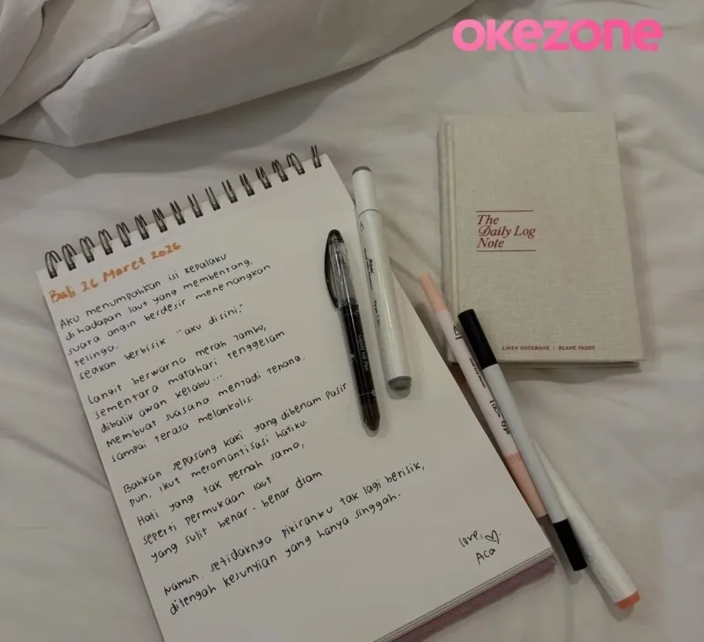 Dalam unggahan Instagramnya pada Minggu (29/3/2026), Aca—panggilan akrab Natasha Rizky—membagikan momen introspeksi diri yang mendalam. Dia menuliskan perasaan dalam bentuk puisi indah yang merayakan ketenangan yang ditemukan di tepi pantai, meskipun hati tetap mengalami pergolakan emosi.