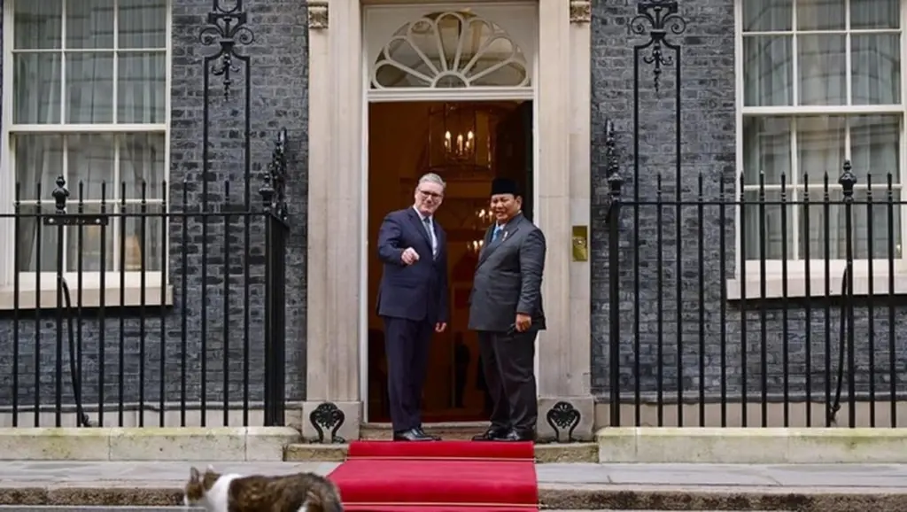London, Inggris – Momen unik mewarnai kunjungan Presiden RI Prabowo Subianto ke Downing Street Nomor 10, London, Inggris, pada Selasa (20/1/2026). Kedatangan Prabowo untuk bertemu Perdana Menteri Inggris Keir Starmer disambut oleh Larry the Cat, hewan berbulu yang menjabat sebagai ‘Chief Mouser to the Cabinet Office’ sejak tahun 2011.